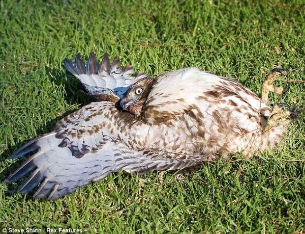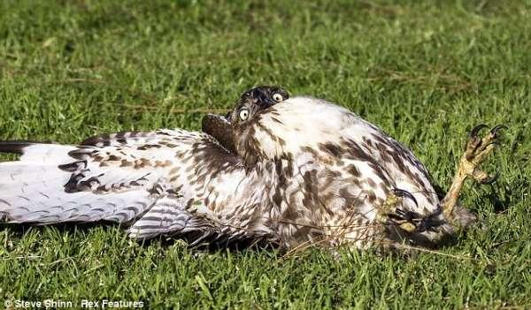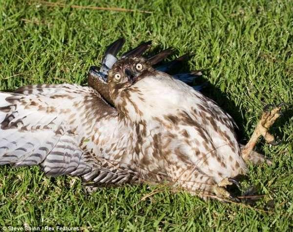 人们在暴饮暴食后常常喜欢蜷缩在沙发里,一只红尾猫头鹰也遭遇了同样尴尬。据英国《每日邮报》1月14日消息,这只红尾猫头鹰在一顿饱餐之后躺在草坪上没办法动弹。
