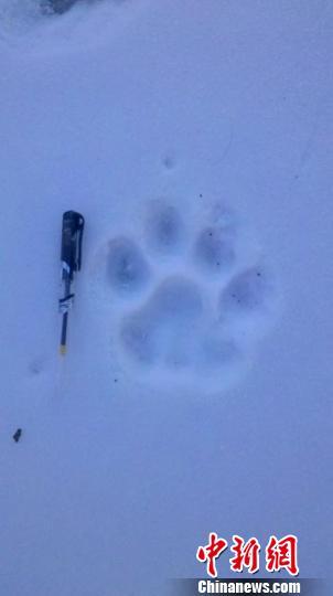 用圆珠笔做参照的虎爪印珲春森林公安供图摄