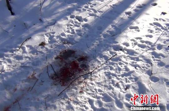 经查看,民警发现,现场的雪地上留有很多动物的脚印,这些脚印和前几天那个老虎吃狗现场留下的脚印相似。现场的雪地上还留有大片的血迹,但并没有发现狗的尸体残骸。