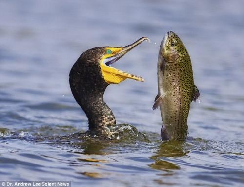 安德鲁丠还称,他在岸上发现鸬鹚捕食时,就及时地按动了快门,最终捕捉到这一精彩瞬间。