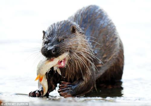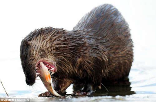 据抓拍到这一场景的摄影师称,在如此寒冷的冬天,这只水獭曾多次跳入河中捕食,直到它吃饱后才最终离去。它的捕鱼技能十分娴熟。