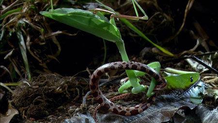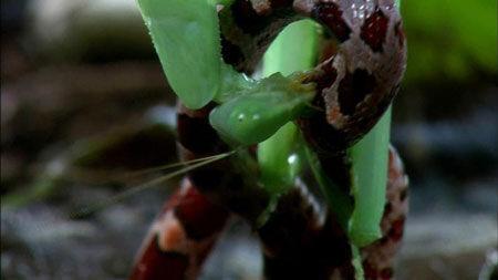 螳螂属于有翅亚纲螳螂科,是一种中至大型昆虫,头三角形且活动自如;前足腿节和胫节有利刺,胫节镰刀状,常向腿节折叠,形成可以捕捉猎物的前足;前翅皮质,为覆翅,缺前缘域,后翅膜质,臀域发达,扇状,休息时叠于背上;腹部肥大。除极寒地带外,广布世界各地,尤以热带地区种类最为丰富。世界已知1585种左右。中国已知约51种。其中,南大刀螂、北大刀螂、 广斧螂、中华大刀螂、欧洲螳螂、绿斑小螳螂等是中国农、林、果树和观赏植物害虫的重要天敌。螳螂体长形,多为绿色,也有褐色或具有花斑的种类。复眼突出,单眼3个。咀嚼式口器,上颚强劲。前足捕捉足,中、后足适于步行。渐变态。卵产于卵鞘内,每1卵鞘有卵20~40个,排成2~4列。每个雌虫可产4~5个卵鞘,卵鞘是泡沫状的分泌物硬化而成,多粘附于树枝、树皮、墙壁等物体上。初孵出的若虫为“预若虫”,脱皮3~12次始变为成虫。一般1年1代,有些种类行孤雌生殖。肉食性,猎捕各类昆虫和小动物,在田间和林区能消灭不少害虫,因而是益虫。性残暴好斗,缺食时常有大吞小和雌吃雄的现象。分布在南美洲的个别种类还能不时攻击小鸟、蜥蜴或蛙类等小动物。螳螂有保护色,有的并有拟态,与其所处环境相似,借以捕食多种害虫。