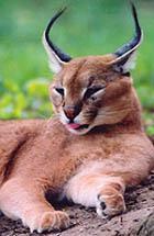狞猫有时被人称作沙漠猞猁或非洲猞猁。因为和猞猁一样,它们都长着又大又尖的耳朵,大耳朵上都有长长的黑色丛毛。但狞猫和猞猁并不是类似的物种,从体形上比较,狞猫的个头略小,约60-95cm长,且身形瘦长,四肢纤细,它们的尾巴也比猞猁长,约有身长的1/3。狞猫的毛色一般是浅黄棕或深红棕色,腹部、眼睛四周以及下巴的毛发则是白色的。同时,眼角还有一条细细的黑线,一直延伸到它们鼻子的地方。它们那双大耳朵的背面是黑色的。实际上Caracal这个名字就是来自土耳其语“karakulak”,意即“黑耳朵”。当然也有人看见过全黑色的狞猫。