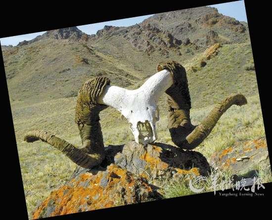 盘羊角,盘羊是雪豹的主要猎物,哪里有盘羊,哪里就有雪豹