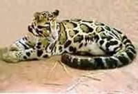 云豹的体格大小介于豹和较小型的猫科动物之间,从头部到臀部仅仅90多厘米,尾巴长75厘米左右;体重一般也只有20多公斤,最大的也不过30公斤。它的个儿比金钱豹和雪豹都要小。云豹全身淡灰褐色,身体两侧约有6个云状的暗色斑纹,这也是它之所以叫云豹的原因。 云豹身体两侧的深色的云纹正是很好的伪装。因此,它们在丛林里生活,很不容易被人发现。平时云豹非常安静,即使当你从它们蜷伏的树枝下走过时,你也不知道你的头顶就有云豹。它们个子虽然短小,但却具有猛兽的凶残性格和矫健的身体。云豹白天休息,夜间活动,它爬树的本领非常强,喜欢在树枝上守候猎物,待小型动物临近时,能从树上跃下捕食。它既能上树猎食猴子和小鸟、又能下地捕捉鼠、野兔、小鹿等小哺乳动物,有时还偷吃鸡、鸭等家禽、但不敢伤害野猪、牛、马,也不会攻击人。 云豹多在冬季发情,发情周期为20一26天,孕期86—93天,一般在春夏季产仔,每胎2—4仔,大多一胎产2仔。刚出生的幼豹体重140——170g,出生后12天睁眼;哺乳期2个月左右,约一岁半性成熟,寿命可达17岁。