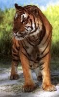 动物简介: 巴厘虎是现代虎中最小的一种,体型不到北方其他虎的1/3。它的体长约2。1米,重90公斤以下,生活在印尼巴厘岛北部的热带雨林里。这里水源,食物充足,成了巴厘虎的天然保护区。色彩斑斓的巴厘虎对印尼人来说是一种超自然的存在,甚至出现在传统的艺术假面具上。19世纪到20世纪初,虎在自己的生存地到处遭人袭击,而随着巴厘岛上人口的增加,人侵犯了巴厘虎的生活空间,巴厘虎对人的威胁也进一步增加,许多人就成了巴厘虎的牺牲品。