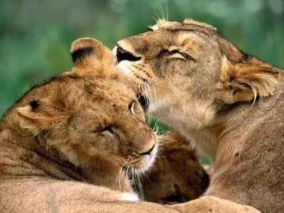 母狮之间通常能互相体恤,和雄狮则不然了!