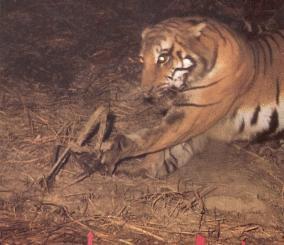 盗猎者刚刚捕获的一只老虎