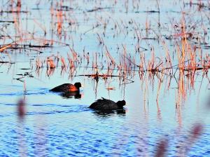 骨顶鸡在上海地区属冬候鸟,分布于横沙东滩、南汇东滩、崇明北湖和淀山湖区域。这些区域的骨顶鸡栖息地都有个共同点,即水域面积大,水草丰茂,为它们提供了充足的食物来源,适合它们越冬栖息,因此通常在这些栖息地会聚集大量骨顶鸡。