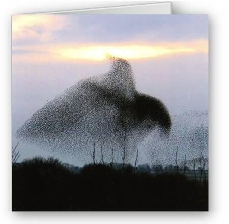 乍看上去,在这张惊人照片中好像有只大鸟在空中飞翔,但这个惊人轮廓事实上是由一群椋鸟形成的。它们受到附近一只游隼的威胁时组成这个不可思议的队形。这群鸟一旦发现这个捕食者,就会聚到一起模拟一只庞大飞行动物的形状。摄影爱好者罗伯-沃尔斯滕霍尔姆在英国萨默塞特郡一个自然保护区拍下这个令人难以置信的现象。