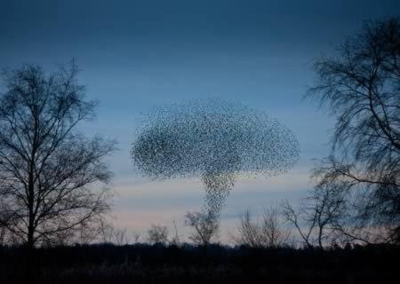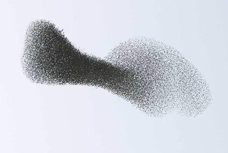 据国外媒体4日报道,在晚秋,也就是冬天即将来临的时候,成群结队的椋鸟就会进行令人难以置信的编队造型特技表演。它们旋转着飞跃天空,就好像在表演一幕看起来像是经过精心设计的芭蕾舞。