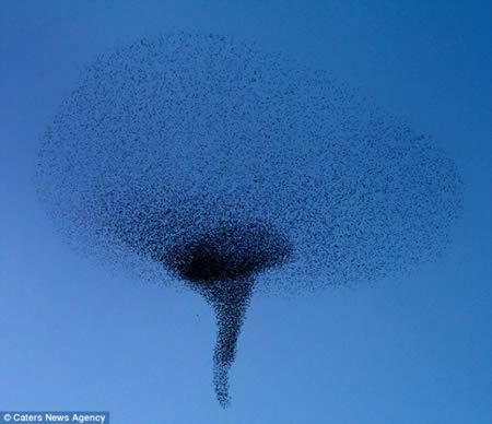 这种鸟类行为的惊人展示叫“鸟儿大聚会”,这个名字完美描绘出数千对拍打的翅膀在空中发出沙沙声的壮观景象。鸟群改变队形时,就会呈现自然界最壮观的景观,一开始像一股庞大烟雾,接下来像一场龙卷风,然后又变成一块挡住日光的雷云。鸟的这种集体舞真的是一道难得的风景。