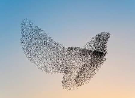 即使没有首领,这种像这群椋鸟一样的动物群体所具有的独特能力反映出集体行为的创造力。现在,科学家正通过研究这种行为去解决人类问题。曼纽尔-普雷斯蒂拍到这张照片。