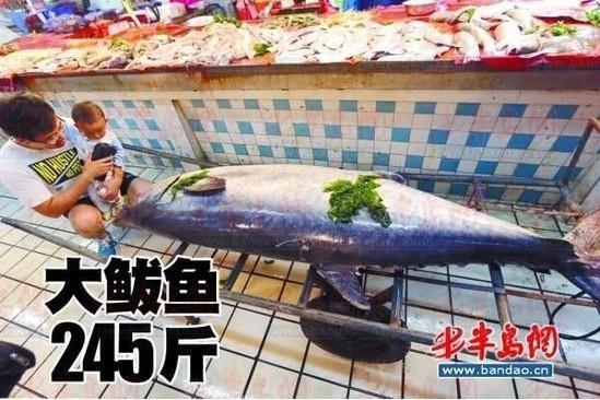 “小港码头上岸了一条巨型鲅鱼,有245斤重。”9日凌晨2时许,市民周先生向本报热线96663反映了此事。随后,这条大鲅鱼被送到伊春路宜欣生鲜综合市场。
