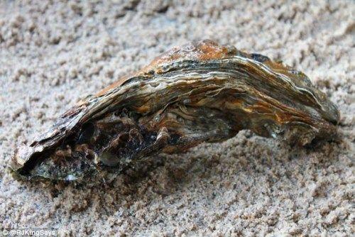 这个牡蛎像44号的鞋子那样大,外部还依附着许多小牡蛎。