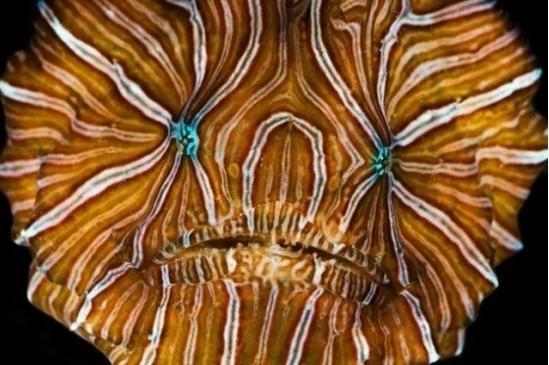 这种鱼的身子呈金色卷曲状,皮肤上嵌着桃色的斑马纹,看上去很迷幻。迷幻躄鱼长相奇怪,行为习惯也和它们的同胞完全不一样,很有研究价值。