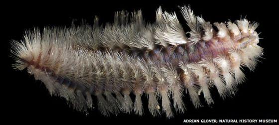 虽然深海热液口附近的环境十分恶劣,但这里却是众多奇妙生物的家园,就如图中这只多毛虫(又称管虫、管蠕虫)