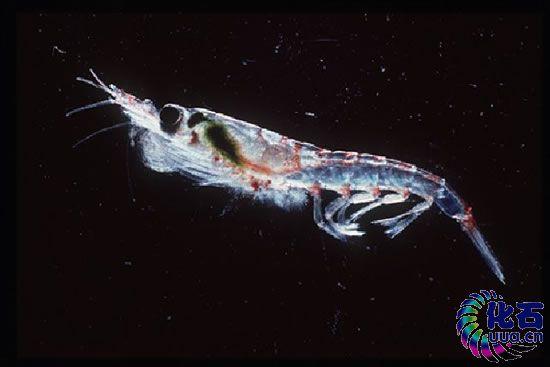 在对南极食物网的一项研究中,科学家们发现生活于海洋表面的叫磷虾(krill)的一种动物,主要集中在南极冰层边缘的南边的一个带状区域。南极磷虾(学名Euphausia superba)是南大洋的一个关键物种,在其生命周期的一个特定阶段它们以海冰面下的藻类为食。磷虾种群数量的下降对南大洋生态系统影响巨大,还会影响到商业性渔业生产。自从注意到以磷虾为食的鲸类聚集于海面冰层边缘之后,科学家们推测磷虾也聚集在冰层下。一个由英国科学家组成的研究组利用自动水下仪器观察到从冰层边缘向内一直延伸到22公里的冰层下分布有大量的磷虾群。在这个仪器上有发送声波的装置,利用回声可以探测磷虾的密度和分布。根据这个信息,Andrew Brierley及其同事发现在冰层下1—13公里厚的条带上大磷虾的数量更为丰富,比暴露海面高5倍之多。