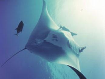 蝠鲼是鳐科动物中体形最庞大的一种,由于其头部长有竖立的大触角以及身体两侧有长长的鳍,在海洋中游动时很像小说里的魔鬼,此外,这种动物有时在游动中还能跃离海面1.5米,因此,生物学界还把它称作“魔鬼鱼”。