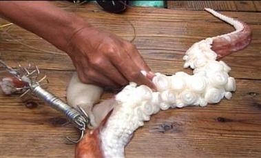 这只巨无霸开始奋力挣扎,80分钟之后,固定在海底的摄影机都被它拖得向上移动了,但它还是无法把触须拔出来。4个多小时之后,这只大乌贼只好采取“壮士断腕”的办法,将一截6米长的触须留在钩上,然后逃之夭夭。