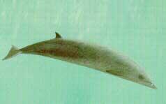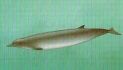 布氏中喙鲸(Mesoplodon densirostris, Blainville"s Beaked Whale, Atlantic Beaked Whale, Dense Beaked Whale, Tropical Beaked Whale), 4.5 到 6 米长,重约1吨