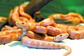 小蟒蛇长到两个月就要分开,因为它们会因为争食而互相攻击。长到半年就可以与游人见面了。