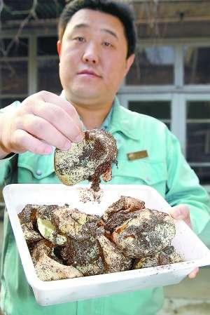 工作人员王峰告诉记者,北京动物园两栖爬行馆内生活着一对比普通蟒珍贵数倍的白化网纹蟒。今年年初,已有7岁、达3米多长的成年蟒,首次产下了12枚卵。经过87天的孵化,已有11条小蟒蛇破壳。现在还有一枚卵正在孵化器中,看上去有鹅蛋大小。
