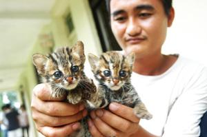 记者在动物园看到,两个小家伙在笼子里时而非常活泼,时而又非常安静,形态和皮毛很像小猫,但当有人去抱它们的时候,就会发出低吼,充满了野性,爪子和牙齿也非常锋利,很有点丛林猛兽的威猛味道。徐主任告诉记者,现在它们大约一个月大,从体形和外貌上看可能是云豹或者是豹猫,但是,是云豹的可能性极大。云豹是国家一级保护动物,非常珍贵,他们动物园里到现在还没有过,现在一下子来了两只,真是值得庆贺,她表示会派专人精心饲养的。
