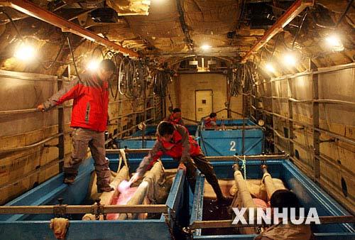 10月19日夜,大连老虎滩极地海洋动物馆从俄罗斯太平洋渔业科学研究中心引进的4头北冰洋白鲸,从符拉迪沃斯托克乘专机抵达大连周水子国际机场。经过近4个小时的装卸运输,4头白鲸顺利入住它们在大连老虎滩极地海洋动物馆的“新家”。