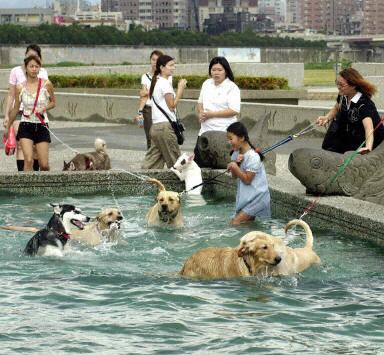 台北酷暑难耐 动物公园狗宝宝喷泉降温有高招