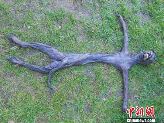 约翰内斯堡消息:南非自然谷最近出现的一具不明生物遗体引发当地居民恐慌和各国网民关注,有人认为这是外星生命来过地球的“又一铁证”。对此,有专家认为,这个黑色干瘦的怪物,可能是幼年狒狒死后形成的木乃伊。