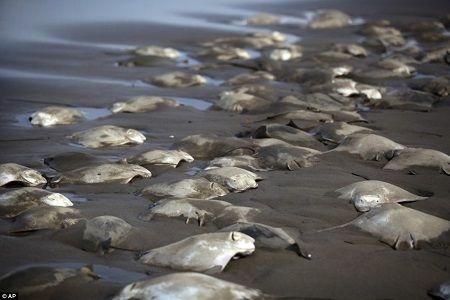 至少300条黄貂鱼的尸体被冲上了墨西哥一海滨城镇的海岸