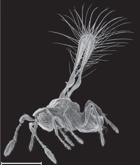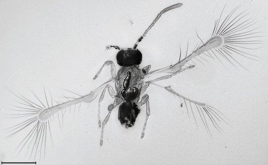 在那里,研究人员发现了Tinkerbella nana物种,而且发现它们的长度都不超过0.25毫米。在显微镜下,这些极小的昆虫显现出真实的外貌,特别是它们长而瘦小的翅膀,末端是毛发一样的边缘。这种翅膀形状可以帮助这种极小的昆虫在飞行过程中减少湍流和阻力,而且它们在飞行过程中每秒需要拍打数百次翅膀。