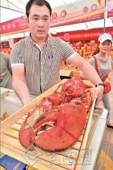 这只“百年龙虾”是一家海鲜公司拿来做展示的。老板介绍,这是一只波士顿龙虾,产自美国缅因州远海,体重6公斤多。在巨型龙虾身旁,几个“小个子”显得很低调。老板说,这才是普通的波士顿龙虾,平均每只约453克,身长约20~30厘米。