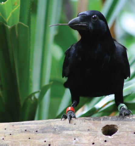 新苏格兰乌鸦是这些预期的主要对象,它可能是地球上第二优秀的工具制造者。它们的工具是利用有锯齿边缘的叶子制造成的钩棒。它们在野外使用这些工具剔出裂缝中的蛆。格雷最初是在澳大利亚东部新喀里多尼亚岛某个山地森林的某个寒冷的清晨观察到这一过程。在接下来的几天,格雷和乌鸦研究学者加文·亨特(Gavin Hunt)发现野生乌鸦利用这些工具寻找圆木洞里的肉。当乌鸦检查这些树木是否可靠时,研究人员在圆木边上放了一个带尖刺的露兜树植物并躲在附近观测。