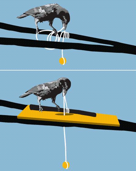 正是乌鸦这灵巧的操作激发了格雷和奥克兰大学的同事亚历克斯·泰勒(Alex Taylor)测试左拉,以及其它野生乌鸦是否也能利用这颇具洞察力的绳子拖拽解决方法,据称乌鸦、食肉鹦鹉和其它聪明的鸟类都会使用这种方法。在第一次测试中,4只乌鸦有3只顺利的解决了这个问题,因此研究人员决定加大难度来测试乌鸦的极限。