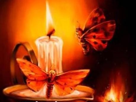 当光源是临近的一根蜡烛时,事情就不一样了。光线到达飞蛾眼部时的角度会随着飞蛾沿着直线前进时而不断发生改变,正如飞蛾在月亮或太阳光源下的飞行一样,它们面对人造光源飞行时也尽力保证恒定的角度。因此,最终的结果是它不断的绕着蜡烛或其它人造灯光源打转。这也就形成了所谓的飞蛾被光源“吸引”的假象,它们最终都不可避免的陷入了炙热的火焰当中。