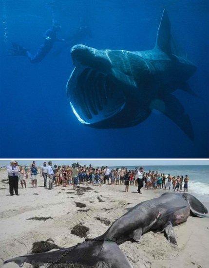 姥鲨是世界上第二种最大的鱼类,当它们进食时可呈现一种独特的外貌,这种吞食浮游生物的鲨鱼会张开大嘴,吸食海水中的浮游生物,它的最大体长可达到12.19米,一些产生恐惧感的人们会认为姥鲨能够吞食人类。人们更多地了解姥鲨是通过死亡样本,它们看上去犹如一种海怪。由于它的鱼鳃腐烂非常快,当姥鲨的死亡尸体被冲到海岸时,会让人们联想到它是一种长着较长脖颈的动物。