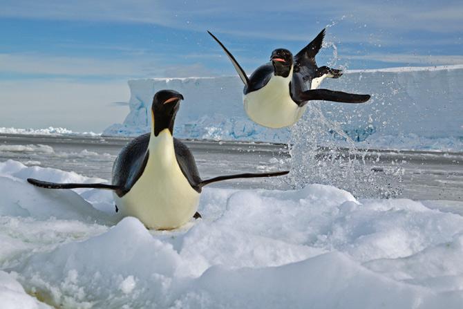想知道企鹅是怎样跃出水面的吗?近日,来自美国《国家地理》杂志的摄影师保罗尼克朗对南极洲的帝企鹅拍摄了一组绝妙的照片,展示了它们是如何像火箭一样将自己推出海面的。