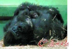 据日本媒体报道,日本名古屋市东山动物园饲养的一只西部低地大猩猩近日成功产崽(如图)。据推算这只母猩猩为40岁,按人类年龄则为60多岁,打破了其保持的日本国内最高龄分娩纪录。