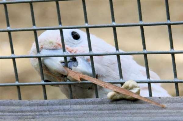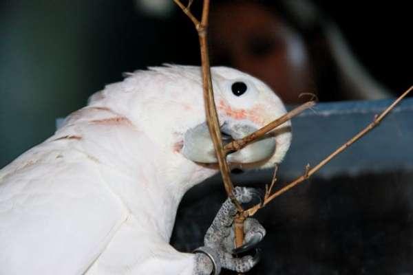 据悉,在一次观察中,科学家们发现,这只鹦鹉在玩石子时将石子不小心弄到了笼子外的地上。另科学家们惊喜的是,这只鹦鹉随即找来一段树枝,然后用嘴叼着,将石子勾到他旁边。随后科学家们将这块石子换成一颗坚果,重新观察。没想到,这只鹦鹉在它所在的笼子的一个木棍上用喙啄下一个小木条,然后将坚果拨到它能够到的地方。在接下来进行的几次观察中,科学家发现,这只鹦鹉每次都会想办法制作不同的工具,甚至在树枝上折一节长短相当的树枝,还对这个工具稍加雕琢,之后用它来拨东西。