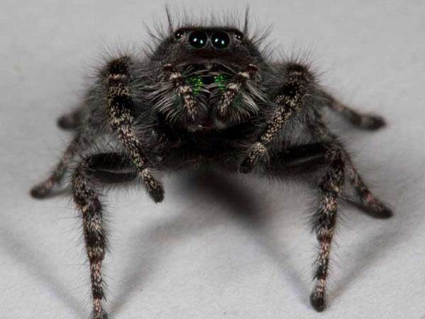 因为跳蜘蛛的八只眼睛是很特殊的,雅各布解释说,当一只跳蜘蛛回头看你时,你会发现在它的前部有一双非常大的眼睛。可以说,跳蜘蛛的结构非常异常,那两只大眼睛是它们的固定“透镜”,其中微小的回飞棒形状的视网膜能够帮助跳蜘蛛接收到高分辨率的景象,并且同时还能看到不同的颜色以及紫外线。每只“首眼”内的视网膜都位于蜘蛛头内一条很长且可移动的管状体后面。蜘蛛可以移动这些管状体,以便四处观看。