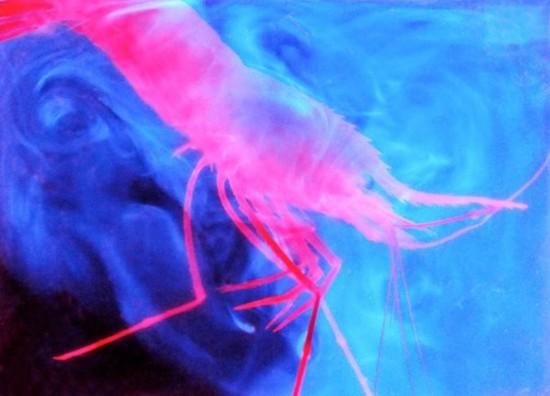 深海发光虾,学名“Parapandalus”,利用有机物发出的光扰乱潜在捕食者。