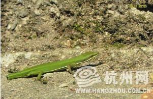 奇特之处在于,虽然它体长12厘米左右,但颜色非常特别,通体是翠绿色,只有肚子是白的,其背部鳞片呈颗粒状。