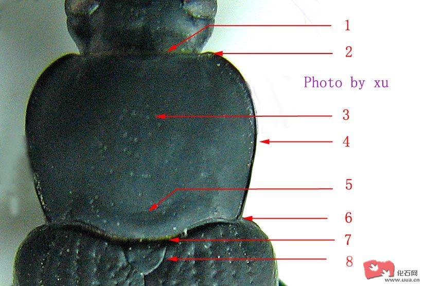 但有一点要提的就是,触角的着生位置、节数,触角的柄节、梗节、鞭节的第一节及末端几节的长度比,还有上面有没有着生毛或者刻点,这些都是很关键的分类特征。