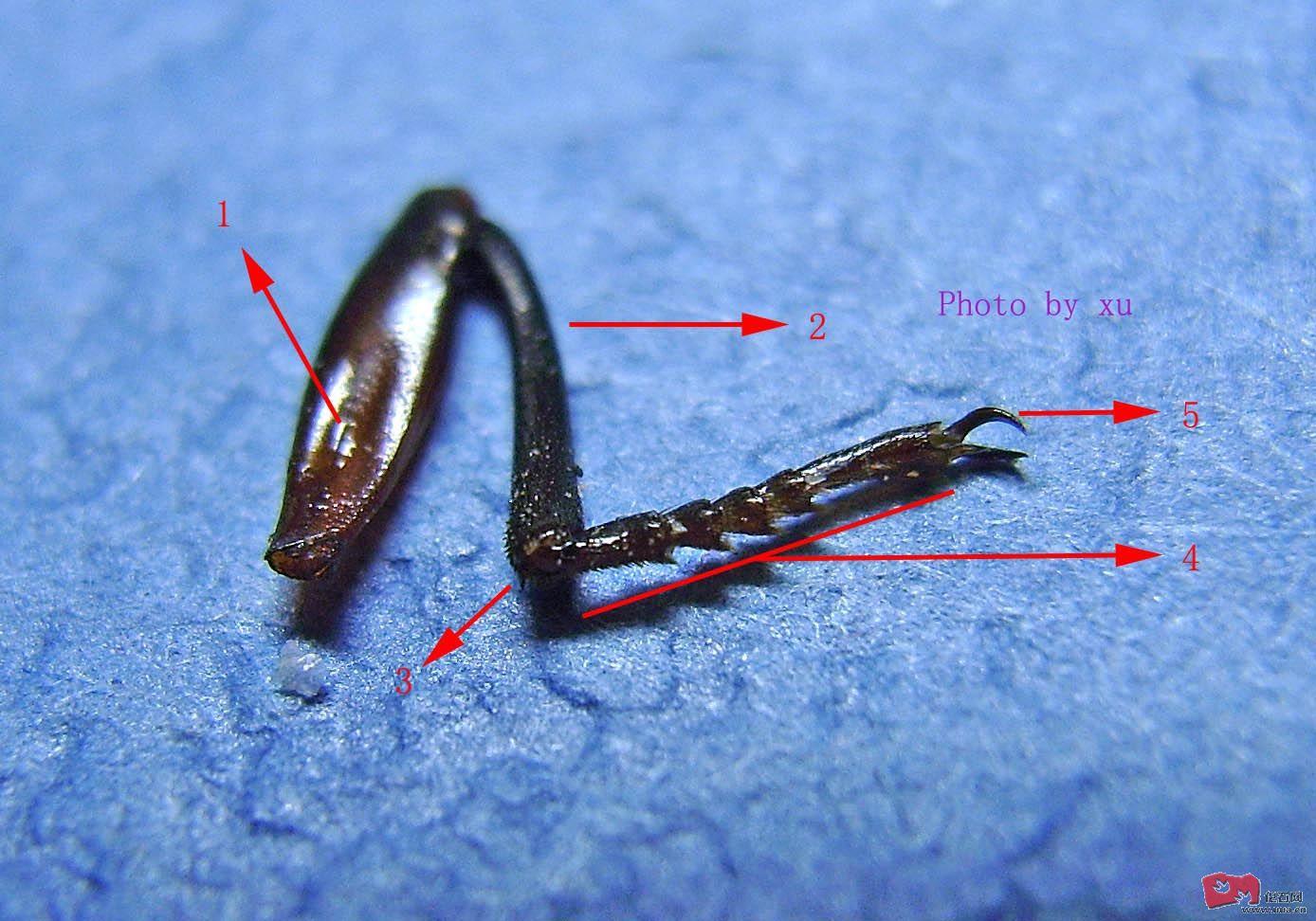 4、跗节(5节,腹面有很多绒毛,注意各节长度比)