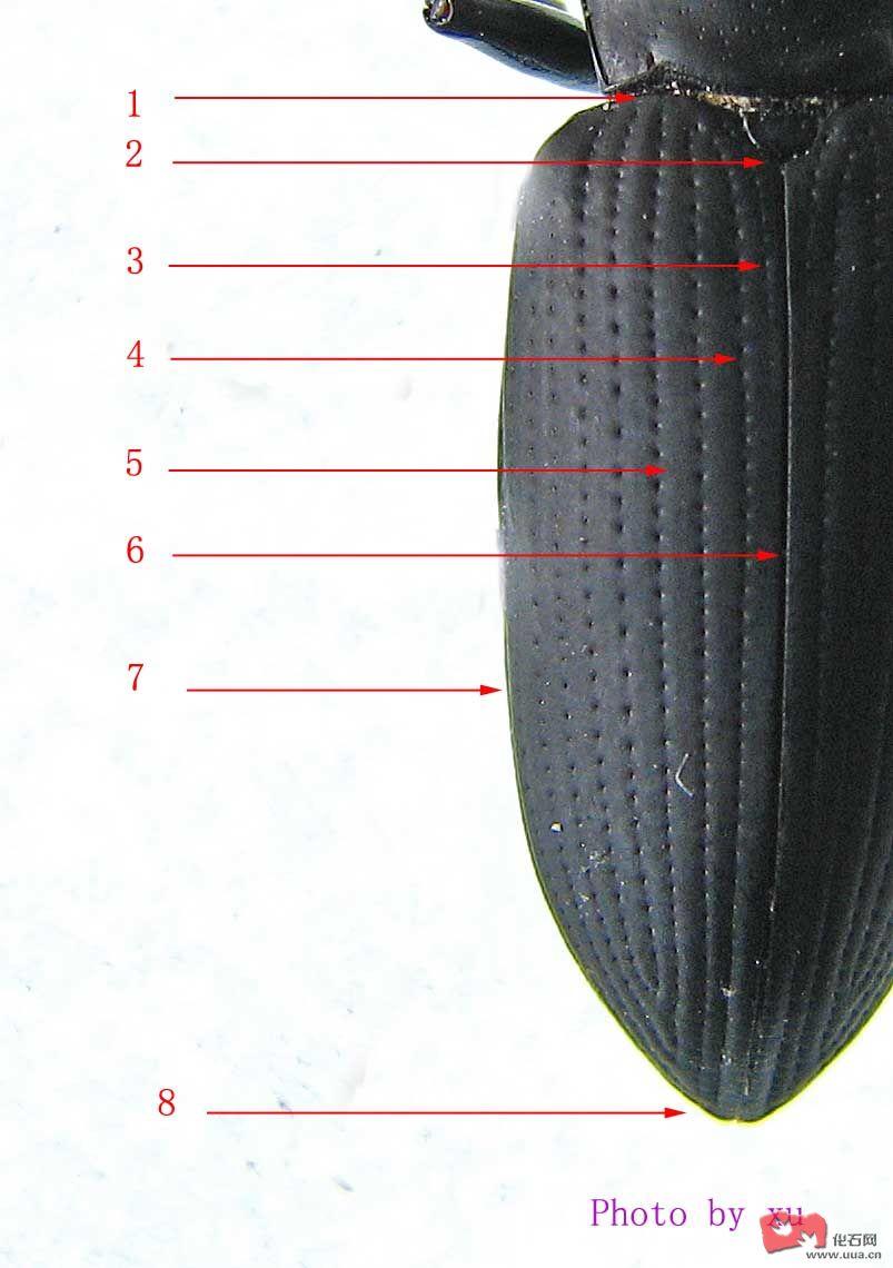 鞘翅表面的刻点和沟纹的有无和排列,都是鉴定特征
