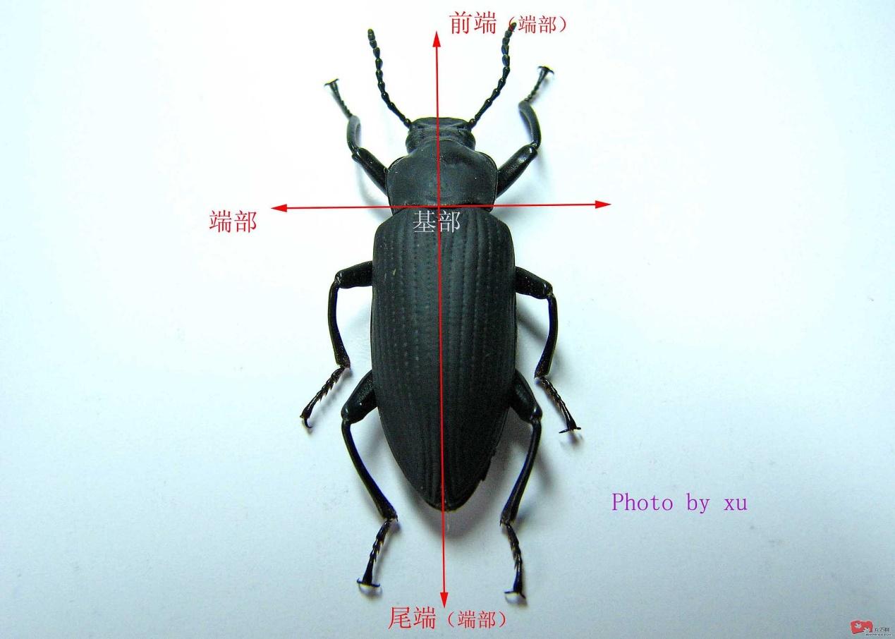 后角:靠近鞘翅两侧的角,有显著和不显著之分。有的后凸成尖角(锹甲、叩甲),有的钝圆
