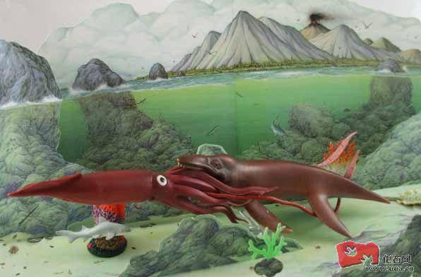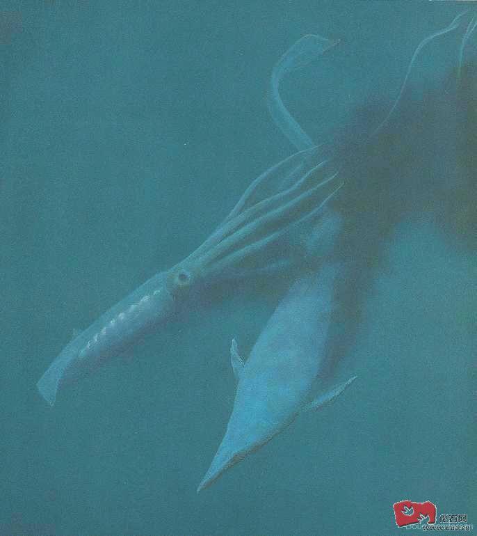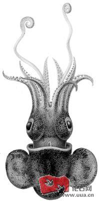 大王鱿Architeuthis及南极酸浆鱿Mesonychoteuthis , 两种巨型而庞大的乌贼 , 谜一样及令人汗颜的生物 。尽管有不少大王鱿的尸体发现及研究 , 但有关它们的生活习性及行为都是鲜为人知的 。但有一点可以肯定 , 这些现生的巨鱿并不是地球海洋上首批巨鱿 , 于八千万年前的晚白垩纪已有大小相当于大王鱿的史前巨鱿出现并跟菊石类 , 沧龙类 , 古海龟及蛇颈龙类分享这一大片海洋 。这些巨鱿的复原图 , 亦只是仅靠几块零碎的内壳(gladius)化石断片推测想像 , 而gladius一字是起源于古罗马军队的短剑 。
