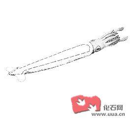 这看似早期的头足类是拥有八条臂爪及没有触须的 , 同样也没有任何证据显示其他吸血乌贼类例如Plesioteuthis 或 Trachyteuthis是有八条臂爪 , 淤泥中观察到有十条臂爪的化石被重新解释为那是臂爪拖拉时留下的印记。这可以肯定史前巨鱿是没有现今大王鱿那对特长具捆绑性的触须 , 而且全长(由触须端至套膜尾端)是较现今大王鱿来得短小 , 但由臂爪端至套膜尾端算起的标准长度 , 两者长度是相近的。我们大约推测成年的托斯特巨鱿Tusoteuthis 全长为 5米或6米 , 当然这是假设 , 因为托斯特巨鱿Tusoteuthis尚没有例外的特长臂爪被发现 。侏儸纪早期德国出土的吸血乌贼类vampyromorphs 具有墨水囊但仍难以判断托斯特巨鱿Tusoteuthis 是否具有墨水囊 , 很可能具备臂爪钩 , 但吸管未成为化石因而难以判断托斯特巨鱿Tusoteuthis的特征。
